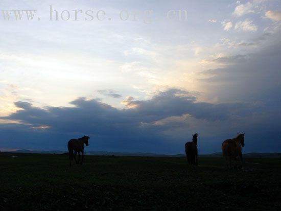 请注意后面那匹马的神态和动作,它的心思和它背上的主人一样,对前面的美女很好奇。