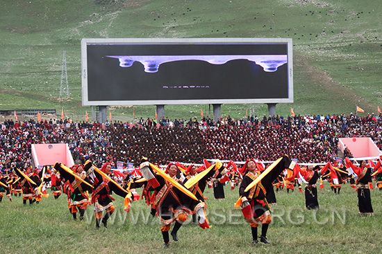 这场以“弘扬、传承、和谐、奋进”为主题的开幕式活动吸引了数以万计的国内外观众前来观看。据悉,本届节会开幕式很大一部分门票直接分发到玉树市周边的村社,并向周边各县按一定比例分配,让更多本地群众分享节会成果。