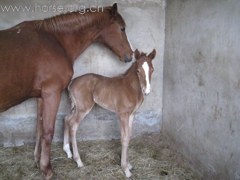 108今年的第一个驹子,2月25日早六点出生,公的,顺产,一切正常,母子平安。顺便麻烦各位前辈帮忙鉴赏一下。