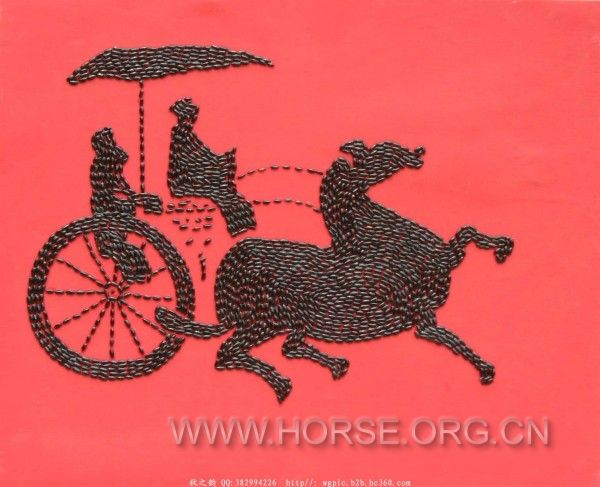 战车每车驾2匹或4匹马。4匹驾马中间的2匹称“两服”,用缚在衡上的轭驾在车辕两侧。左右的2匹称“两骖”,以皮条系在车前。合称为“驷”。马具有铜制的马衔和马笼嘴,这是御马的关键用具。马体亦有铜饰,主要有马镳、当庐、马冠、月题、马脊背饰、马鞍饰、环、铃等。